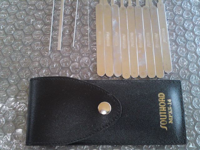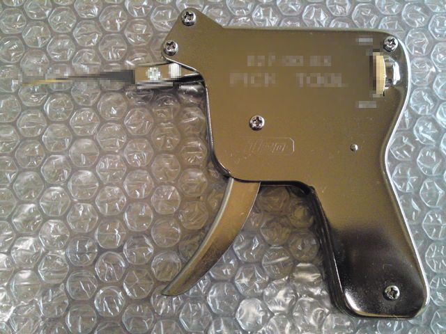 「錠を開ける、開錠道具であるピッキングツール類は、専門ショップに自動車運転免許証などを提出し、かつ鍵屋さん登録をしないと入手保持してはいけない決まりがありますので、写真もモザイク処理しております」